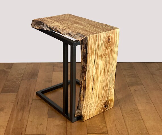 In Stock Live Edge Table With C Style Table Base Industrial Live Edge Furniture Modern End Table Matching End Table Set